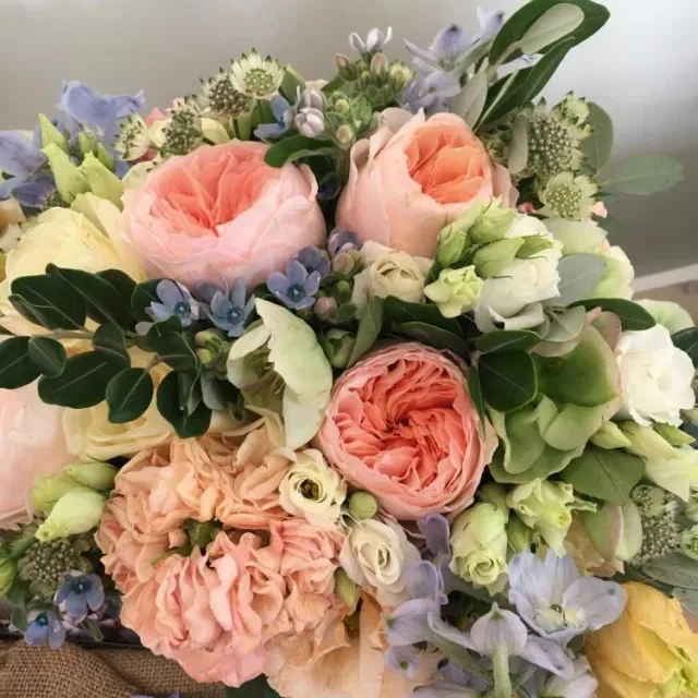 "We had the honour of Joy creating our desired wedding flower arrangement for our wedding on Sunday. She created such a beautiful arrangement! I could not have wished for anything better! Joy created my bridal bouquet, bridesmaids bouquets, buttonholes, corsages, table centre piece flowers, blossom trees and ceremony garlands and pew ends. Joy really is amazing at was she does and I could not recommend her enough!"